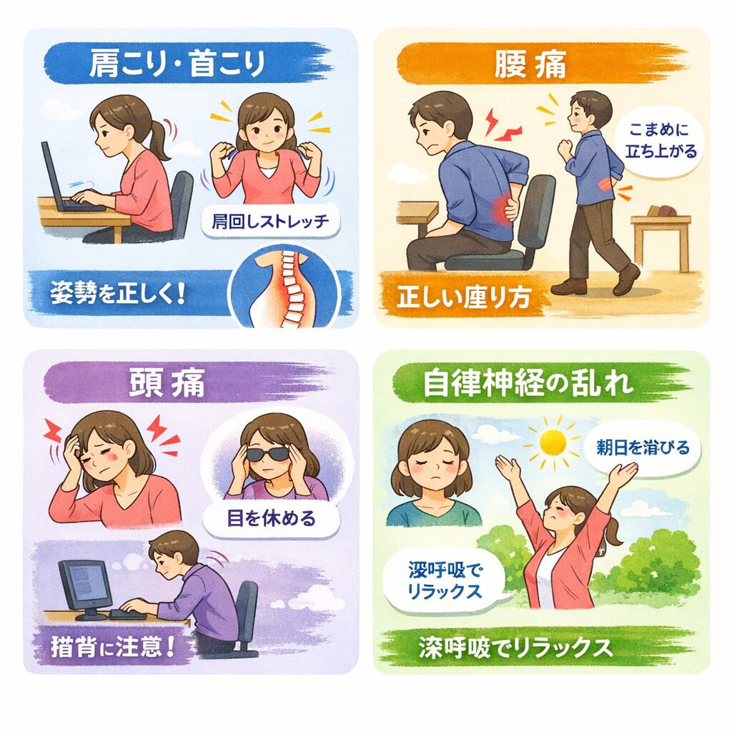 肩こりや腰痛、体のだるさなどの不調をそのままにしていると、慢性的な症状につながることもあります。